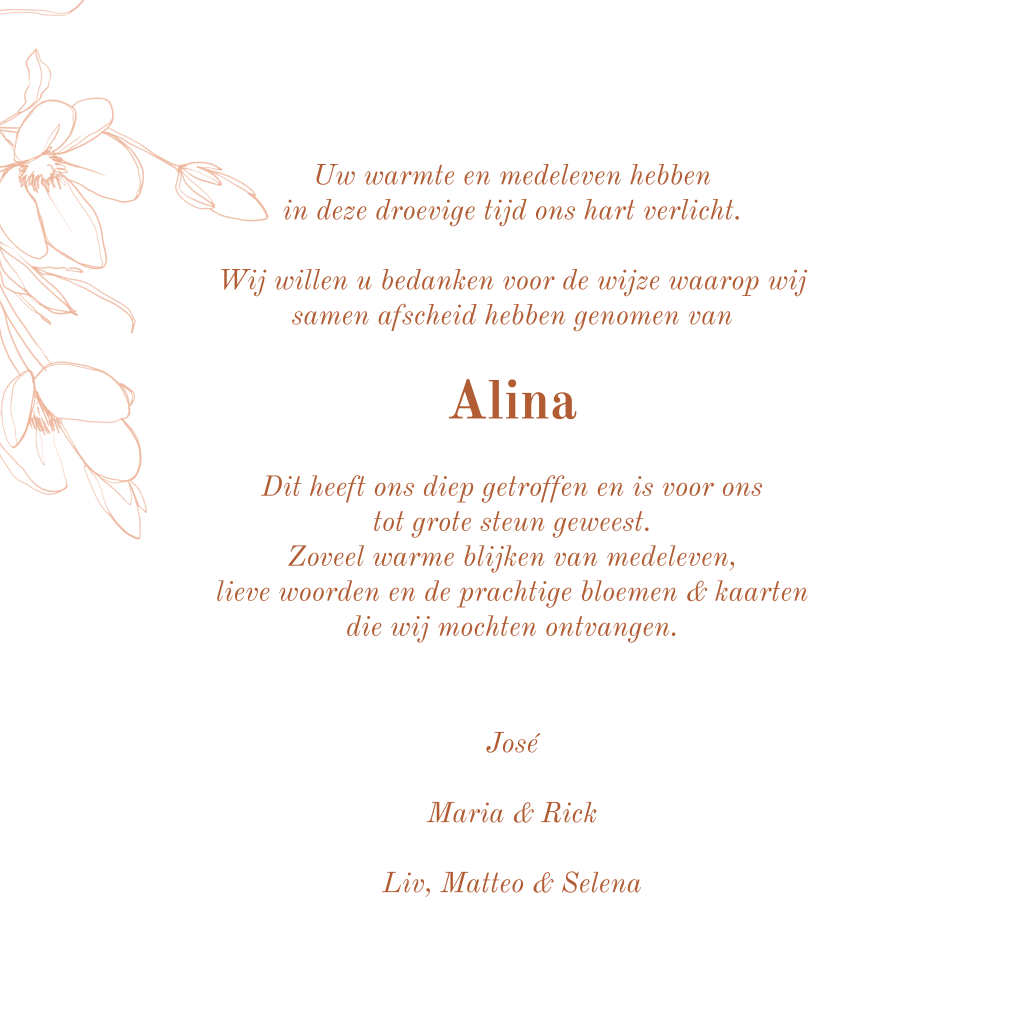 Dankbetuiging bedankkaart na overlijden met bloemen in terra