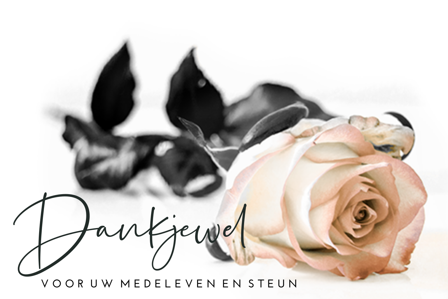 Maak mooie rouw bedankkaartjes voor al het medeleven na het overlijden van jullie dierbare. De roze kleur van de roos staat voor dankbaarheid en zuiverheid.