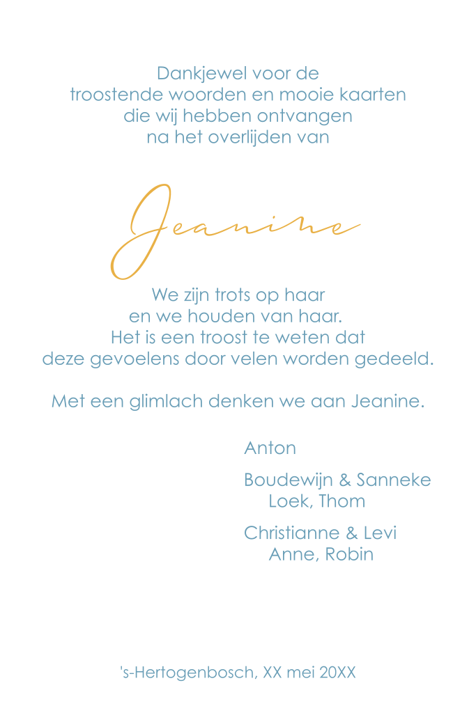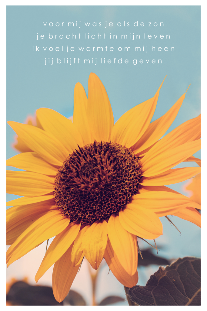 Bedankkaart na overlijden met zonnebloem en gedicht
