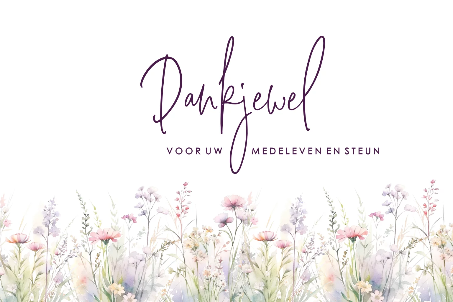 Maak een mooie bedankkaart na het afscheid in de stijl van de rouwkaart. Lieve woorden in de vorm van een dankjewel geeft aan hoeveel de steun voor jullie betekent heeft.