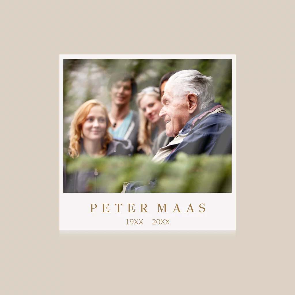 Bedankkaart na overlijden met foto polaroid als aandenken