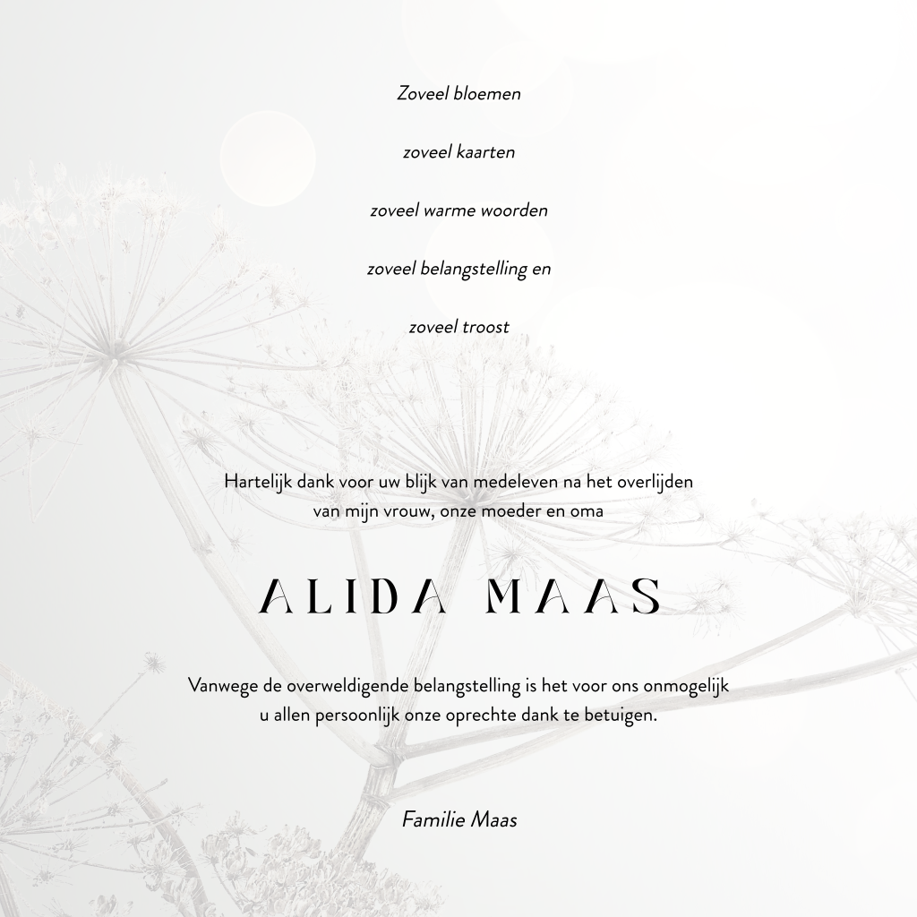 Bedankkaarten na overlijden maken. Voor familie en vrienden zijn dit kaartjes om te herinneren en te bewaren. Kies voor deze kaart met berenklauw.