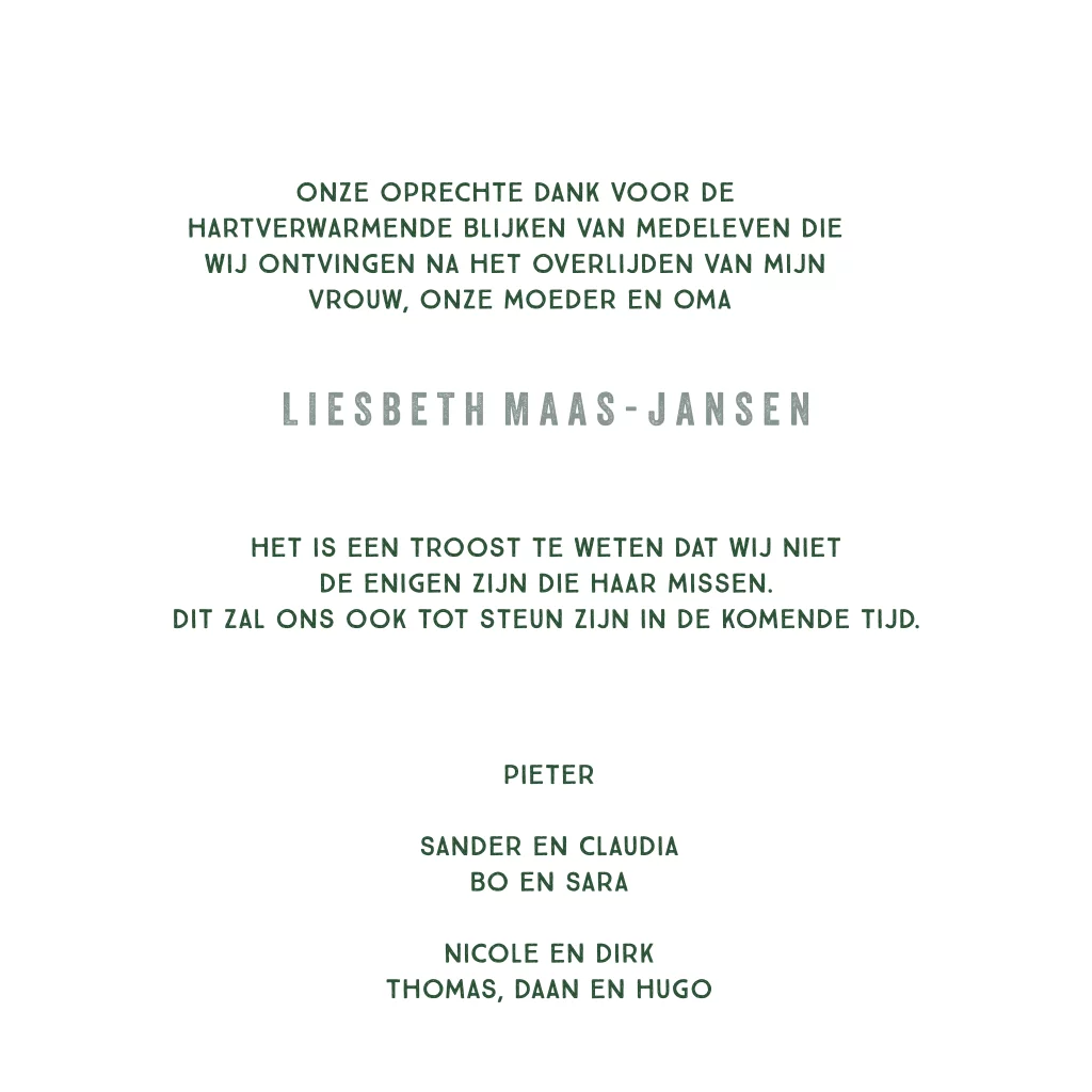 Combineer een rouw bedankkaartje met een mooie kerstwens. Maak een boodschap van liefde en dank en verstuur deze in een bijzondere tijd van het jaar.