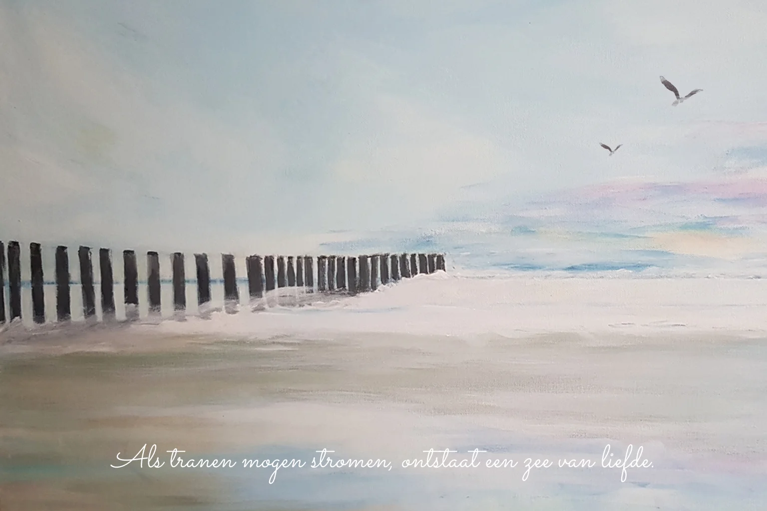Bedankkaartje rouw met aquarel van de zee - mooie woorden