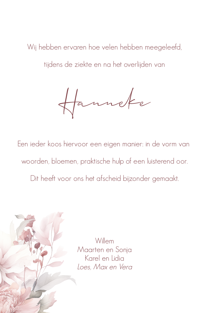 Hoe waardevol om vrienden en familie te bedanken na overlijden met een prachtige kaart om te herinneren.