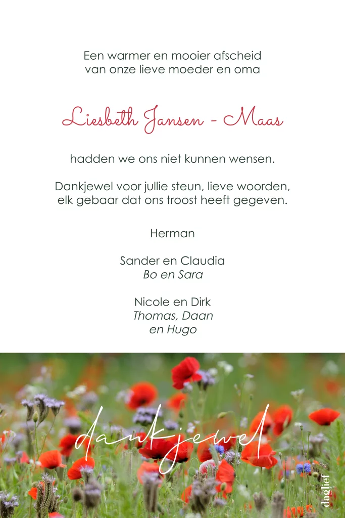 Dankbetuiging rouw klaproos