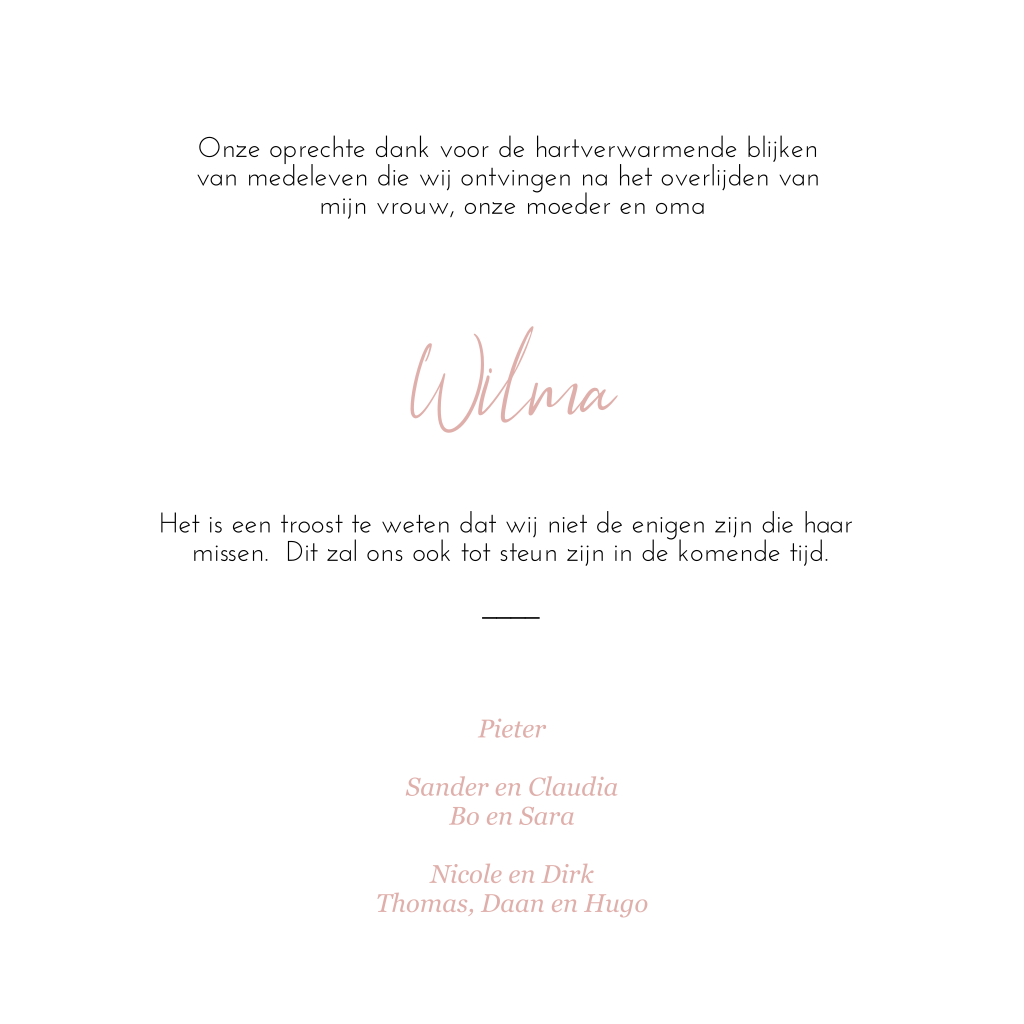Kies dit voorbeeld bedankkaartje na overlijden en maak een uniek en persoonlijk ontwerp. Kies voor de toevoeging van folie voor een luxe uitstraling.