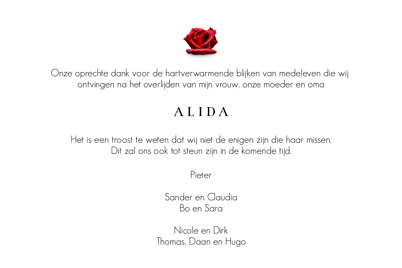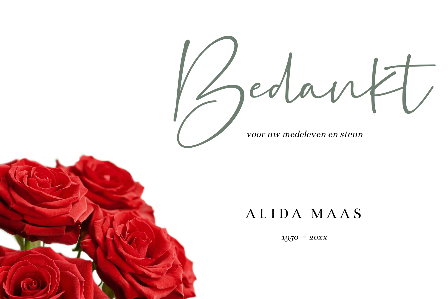Bedank vrienden en familie voor alle steun na het overlijden van jullie dierbare met rouw bedankkaartjes. De rozen staan voor liefde en respect.