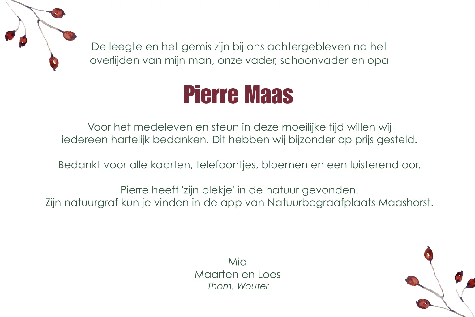 Bedankkaartje rouw steun na overlijden in kerststijl