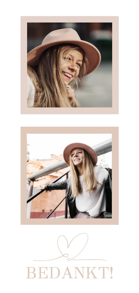 Stijlvolle bedankkaart met warme fotocollage en hoogglans