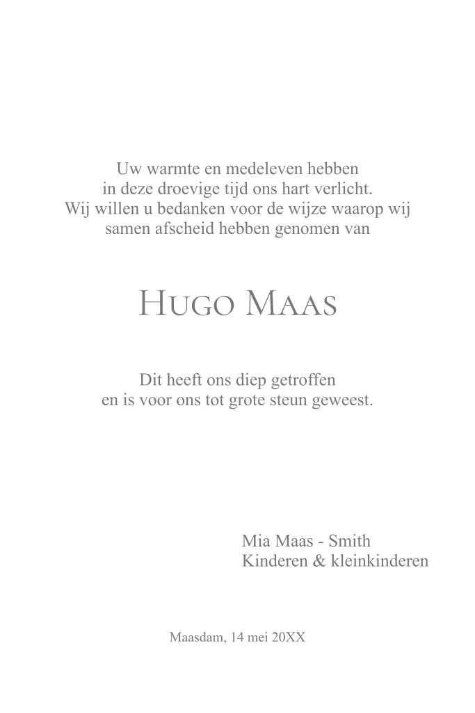Voorbeeld bedankkaart na overlijden klassiek ontwerp