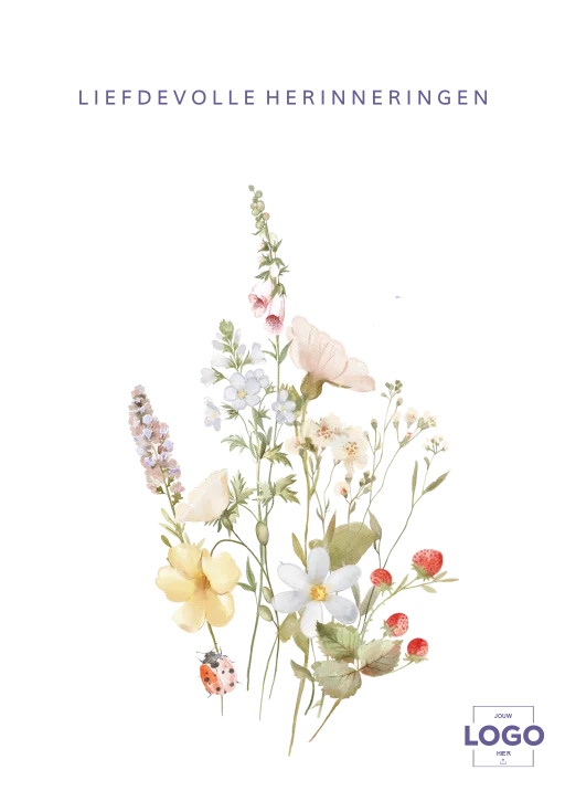 Inspirerend voorbeeld van een houten condoleance omslag met bloemen. Ontwerp je eigen stijl met logo en tekst en beeldelementen die bij jou passen.