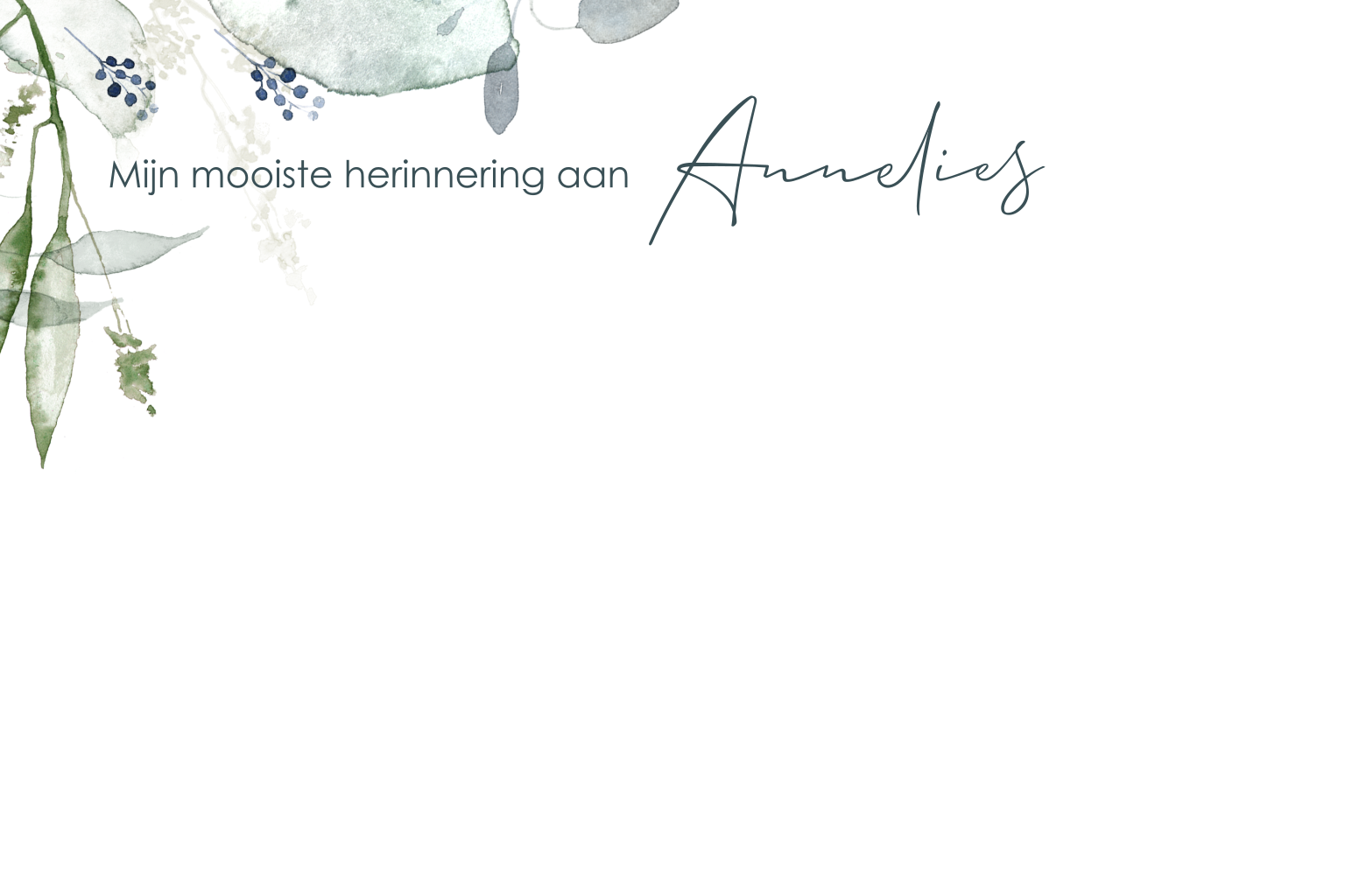 Bestel een condoleance kaartje om uit te delen op de uitvaart. Familie en vrienden kunnen hun herinneringen over de overledene schrijven op dit mooie kaartje