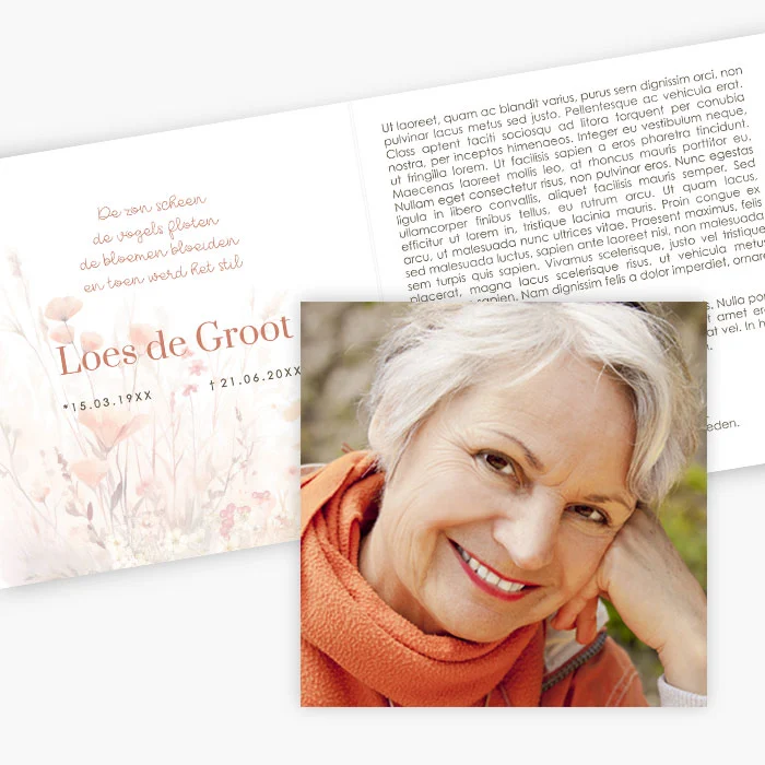 Prentje met voorzijde foto en binnenzijde veldbloemen