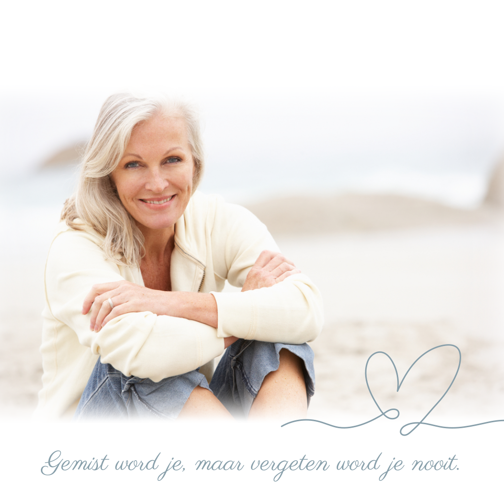Gedachtenisprentje met portretfoto, hartje en gedichtje