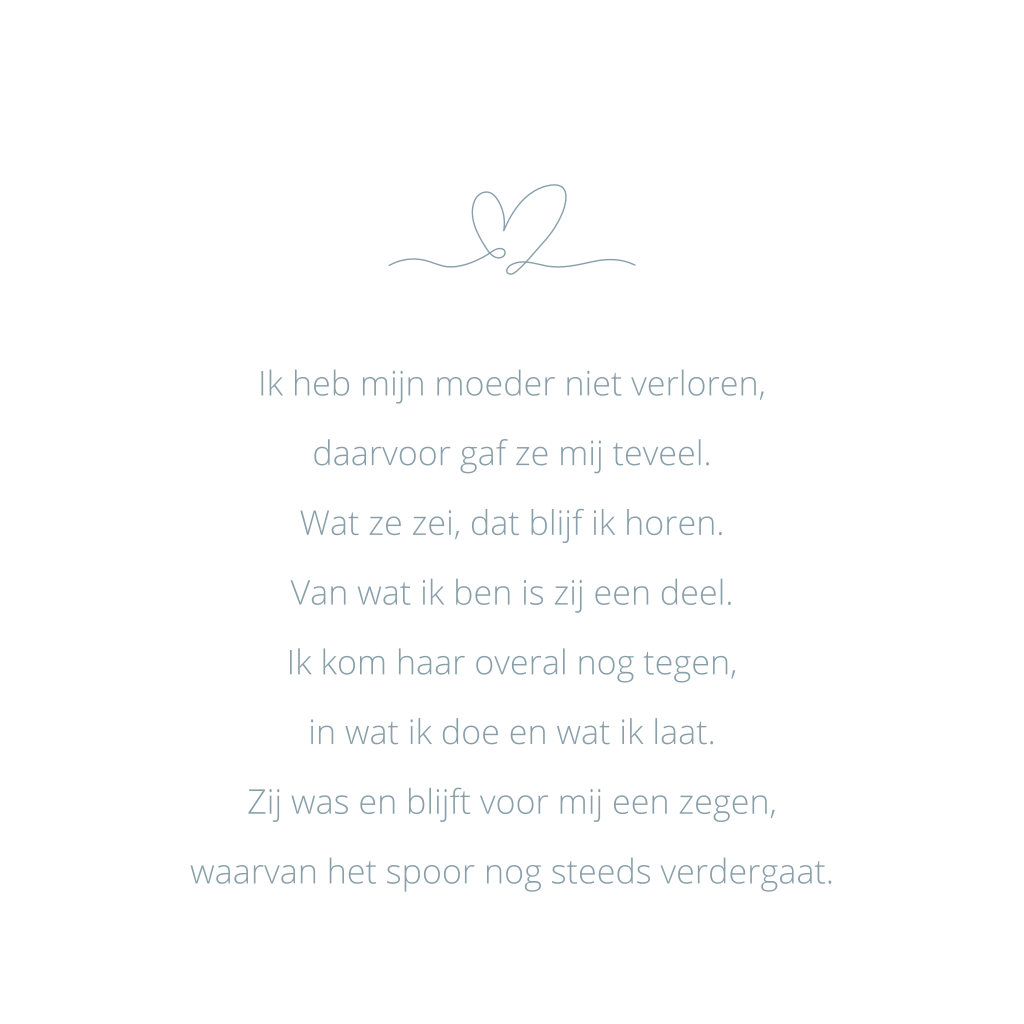 Kies voor een tastbare herinnering om uit te delen bij het afscheid. Liefdevol een hartje en een mooi gedicht 'Moeder'.