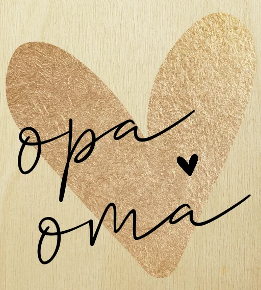 Kerstbal houten hanger met gouden hart opa en oma