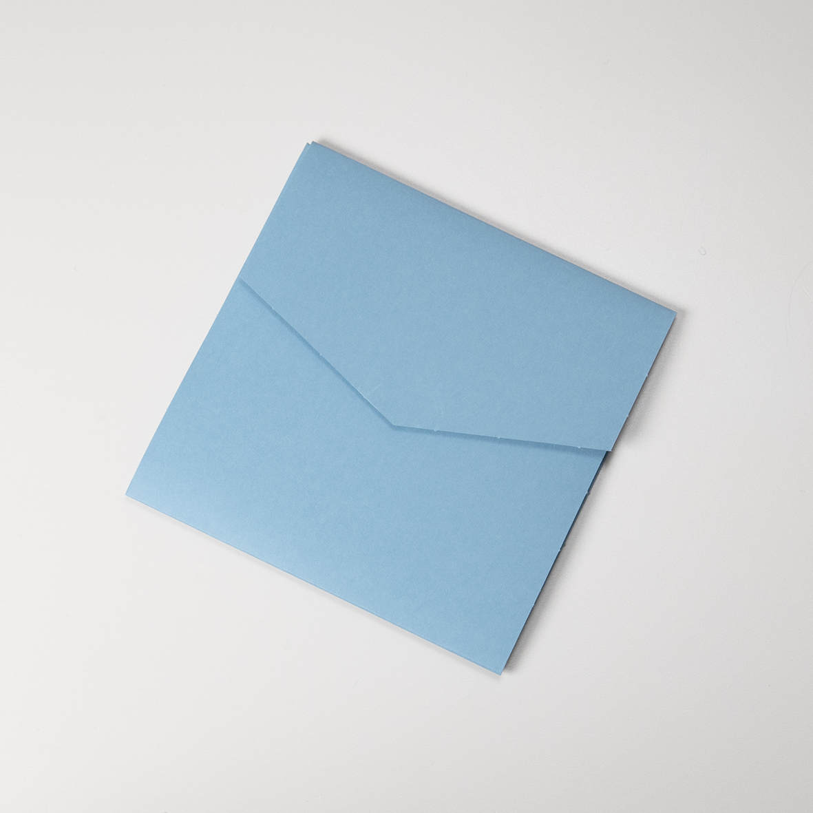 Misty Blue pocketfold voor vierkante kaarten van 13 x 13 cm. Formaat pocketfold: 14,5 x 14,5 cm. Kies voor envelopmaat 16 x 16 cm.