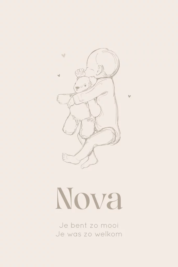 Kies voor dit lieve baby rouwkaartje in nude tinten. Deel de geboorte en het overlijden van jullie kleintje.