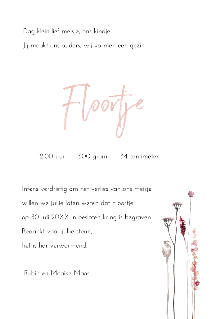 Handgeschilderde droogbloemen maken dit kaartje uniek en tijdloos. Een kaartje om nooit te vergeten.