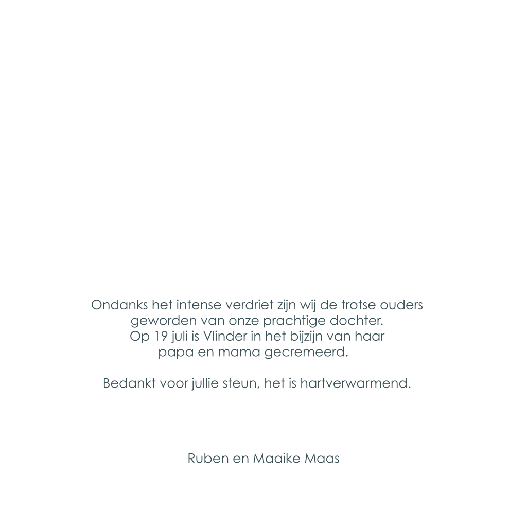 Wat een lief kaartje is dit. Speciaal voor jullie meisje, ontwierpen wij dit rouwkaartje. Geïllustreerde takken en blaadjes, een lief vogeltje, het vlindertje en de hartje. In dit ontwerp is gewerkt met folie.