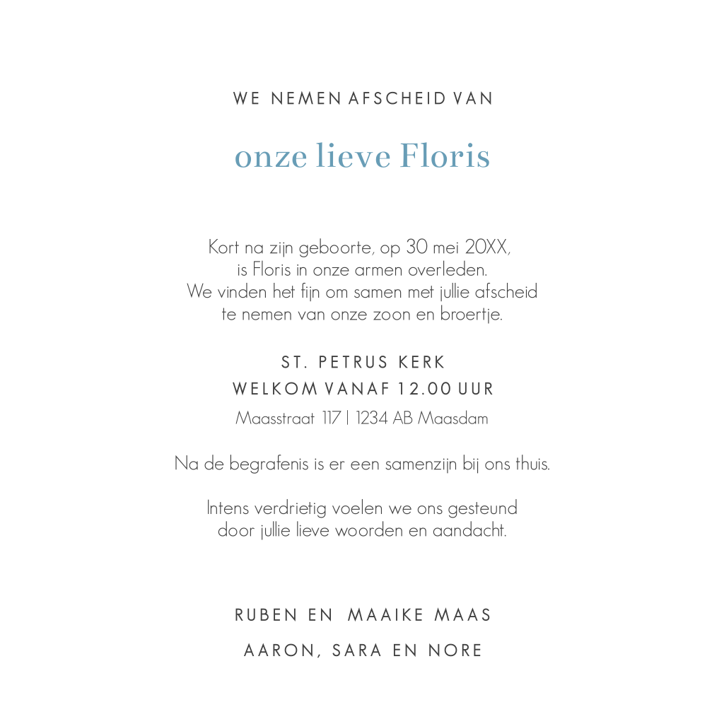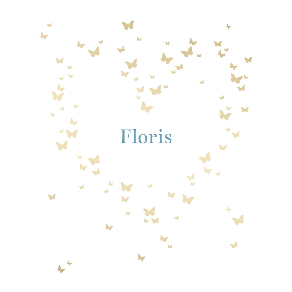 Lief rouwkaartje voor het overlijden van jullie kleine zoontje. Met goudkleurige vlindertjes en aan de binnenkant een mooi gedichtje.