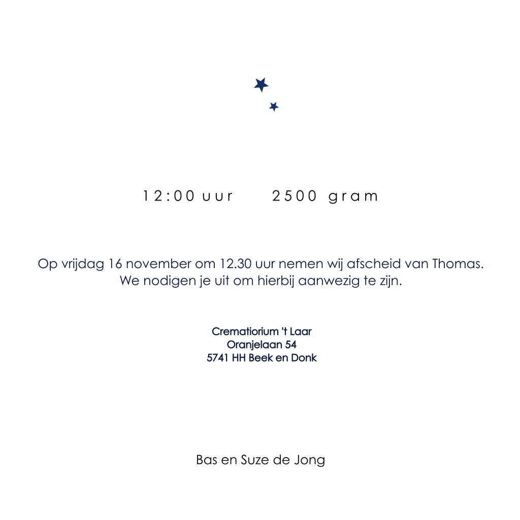 Love you to the moon and back. Dat is wat je vrienden en familie wilt vertellen over jullie zoontje. Een jongetje waar jullie ook meteen afscheid van moesten nemen. De goudfolie maakt het kaartje bijzonder.
