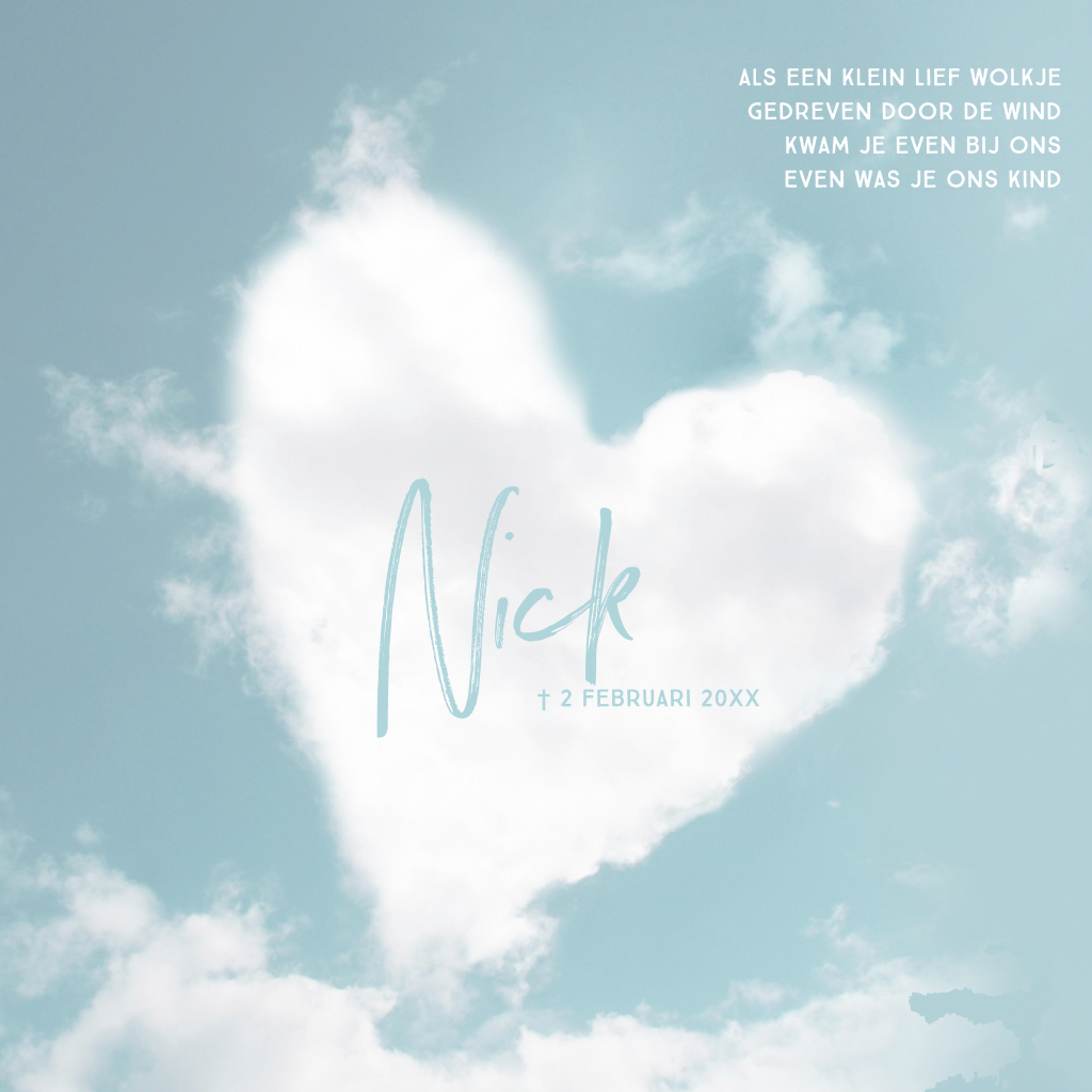 Rouwkaartje hart van wolken