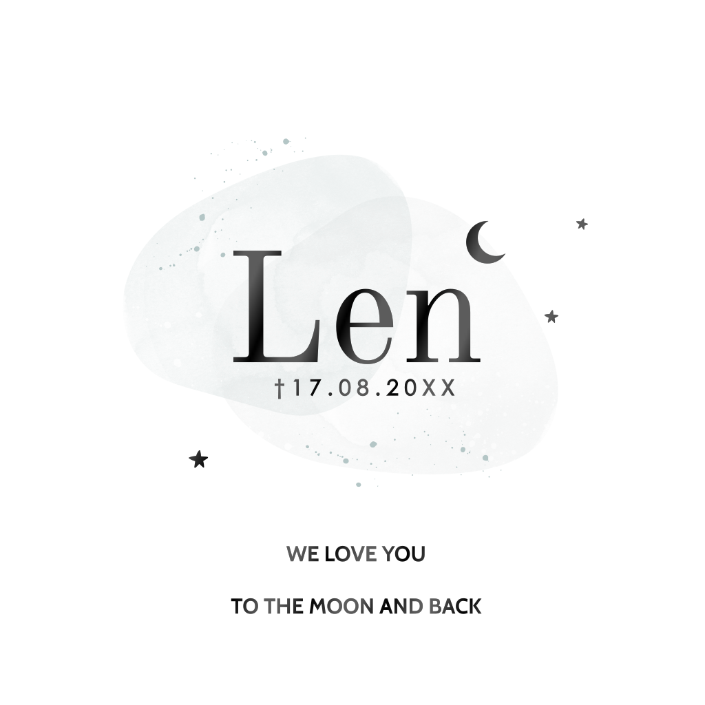 Rouwkaartje baby jongen met wolkjes, maan en sterren | folie