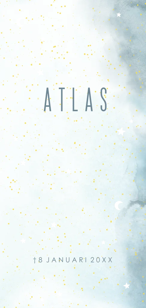 Een prachtig rouwkaartje met goudfolie. Trots en intens verdrietig maak je voor jullie zoon een uniek kaartje om met familie en vrienden de komst en het afscheid van jullie zoon te delen.
