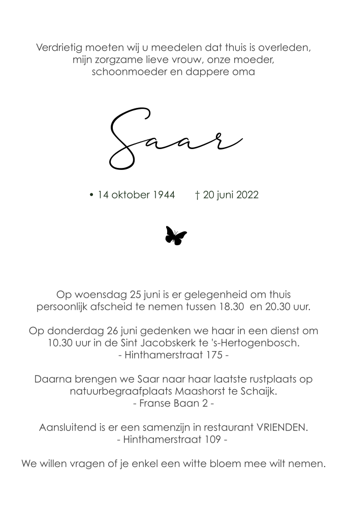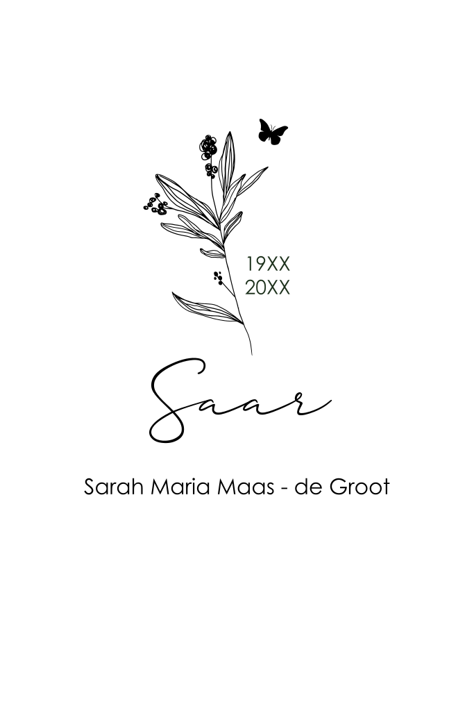 Dit zijn de twee woorden die deze rouwkaart het best omschrijven. De combinatie van het sierlijke lettertype en de subtiele illustraties maken deze rouwkaart uniek.