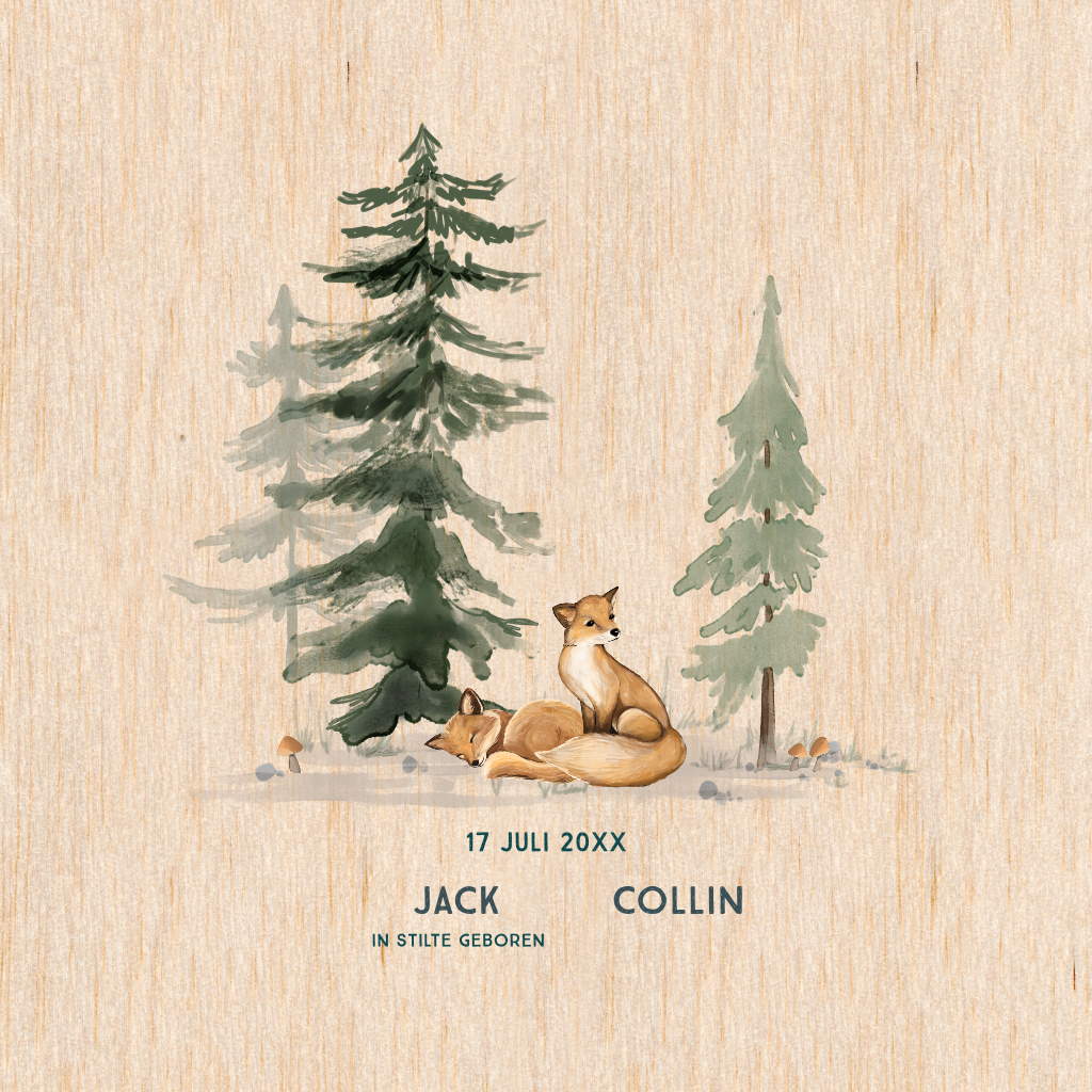 Intens verdrietig, dankbaar en trots. Emoties die je totaal overdonderen wanneer je van één van je kleintjes afscheid moet nemen. Dit prachtige kaartje is gedrukt op echt berkenhout. Maak het compleet met jullie teksten, lettertype en kleuren.