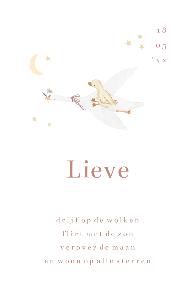 Baby rouwkaartje meisje met maan en sterren en lief eendje