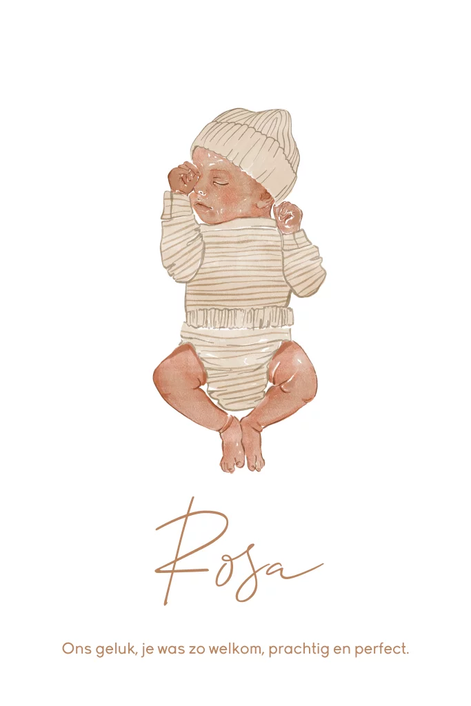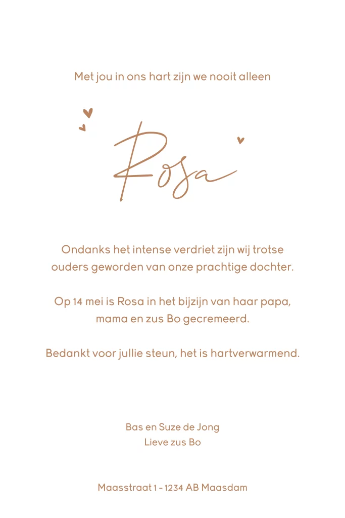 Lief baby geboorte en rouwkaartje van je kleine meisje die je helaas weer hebt moeten loslaten. Eenvoudig in zachte tinten.
