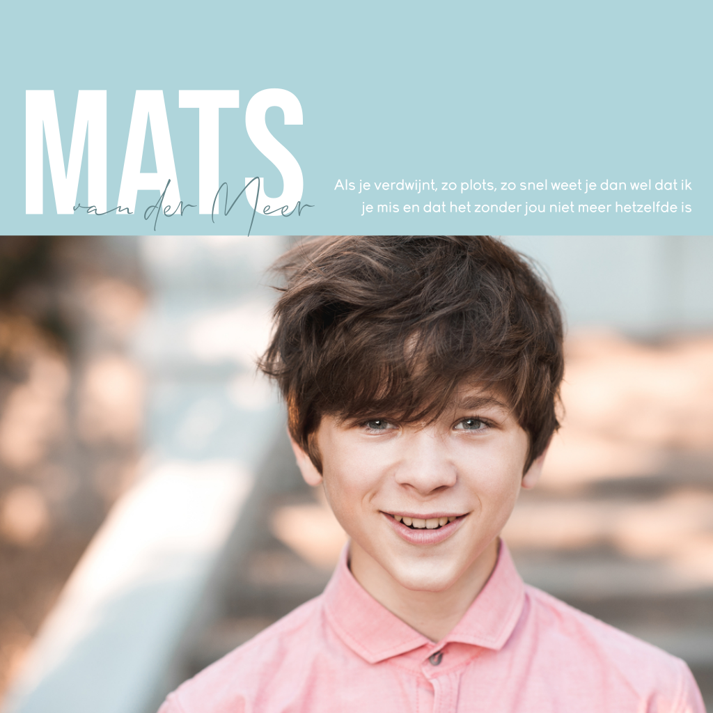 Moderne rouwkaart kind zoon met foto en intense kleuren