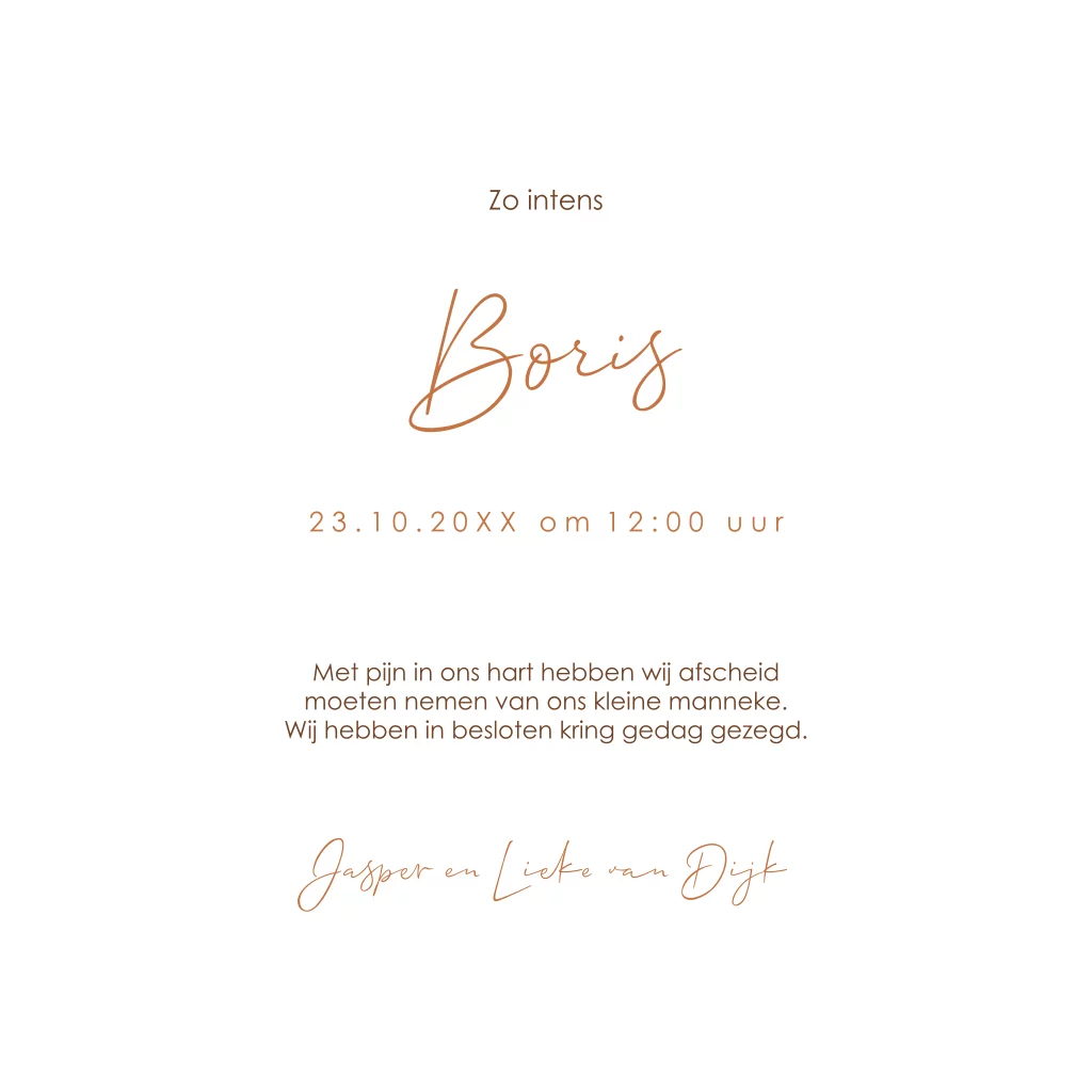 Baby rouwkaartje met beertje en warme koperkleuren