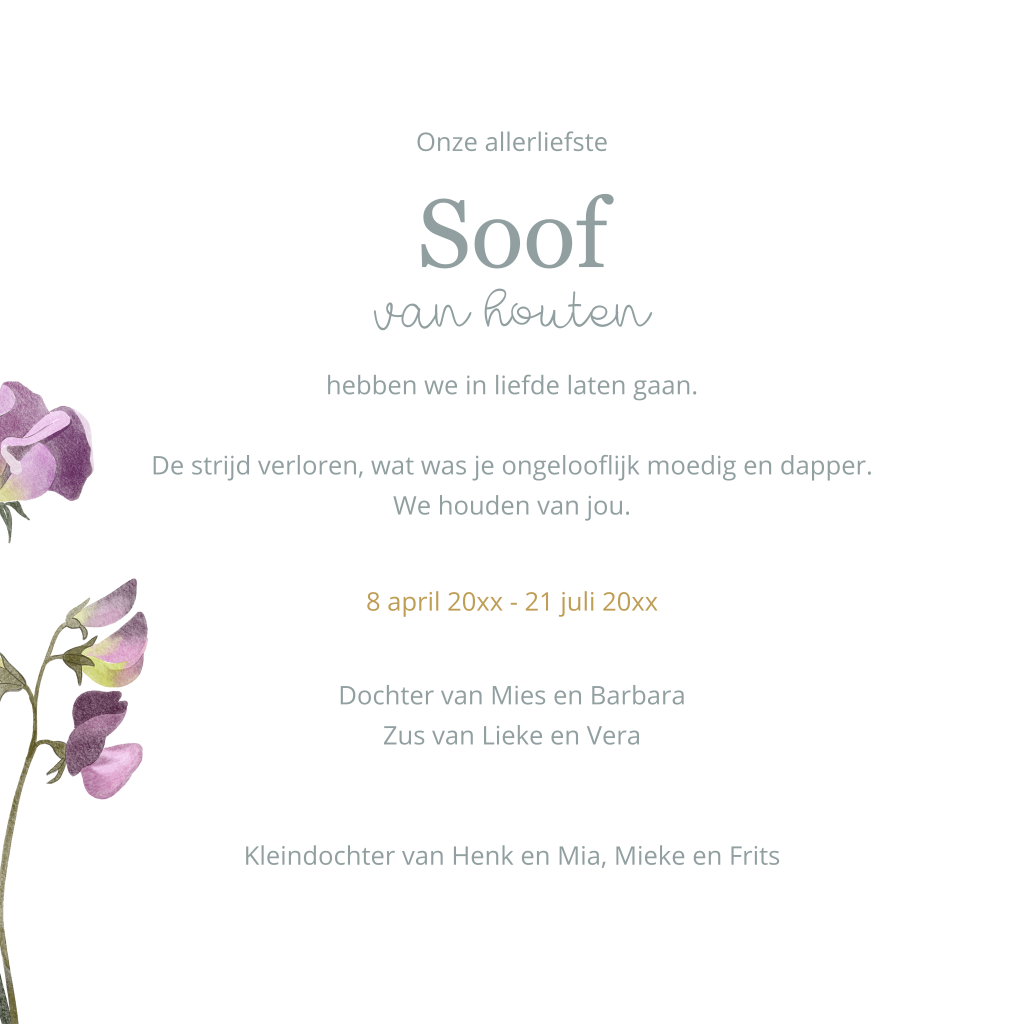 Rouwkaart kind meisje met fotocollage hartje en geboortebloem