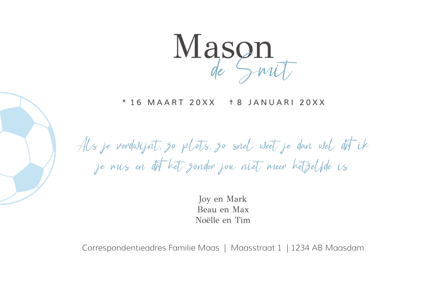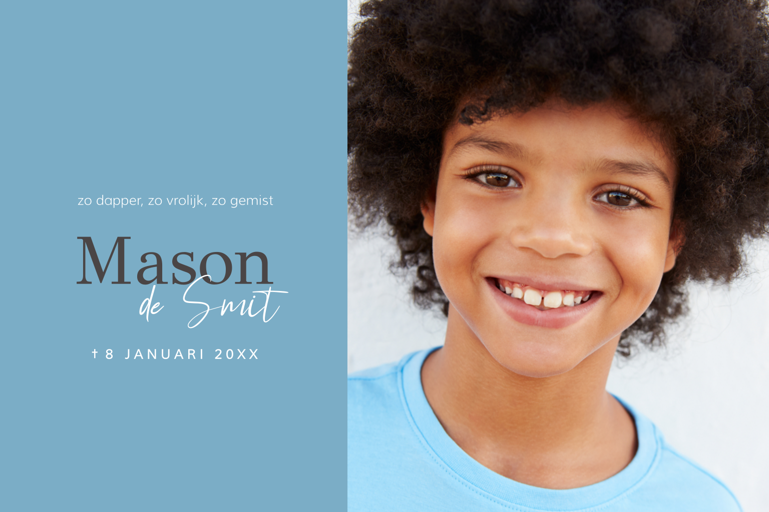 Rouwkaart kind zoon met foto en vlakverdeling in kleur
