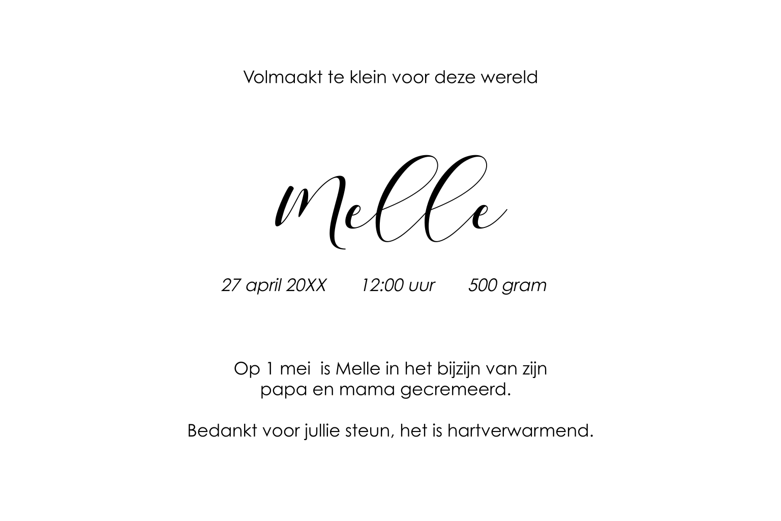 Maak met zorg en aandacht zelf het rouwkaartje. Dit kaartje laat verbinding zien tussen het kleintje en de ouder.