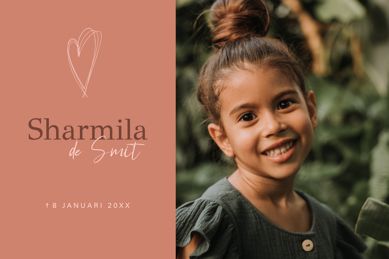 Stoere voorbeeld rouwkaart kind met foto naam en hartje