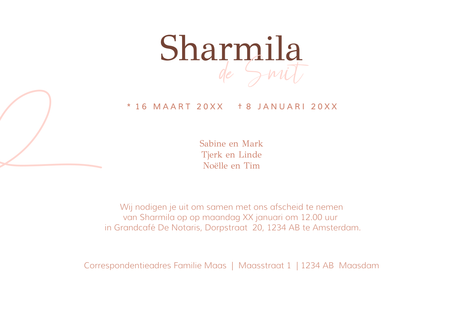Maak de uitnodiging voor het afscheid met een mooie foto en haar favoriete kleuren.