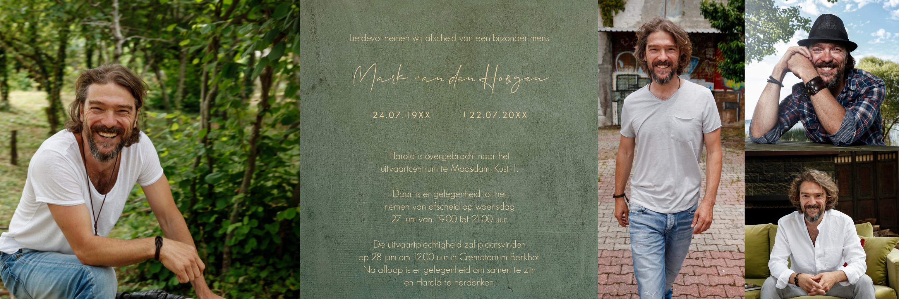 Maak een persoonlijke rouwkaart door te kiezen voor een drieluik kaart. Omdat je nu gebruik kunt maken van 6 pagina's kun je eenvoudig werken met een fotocollage.