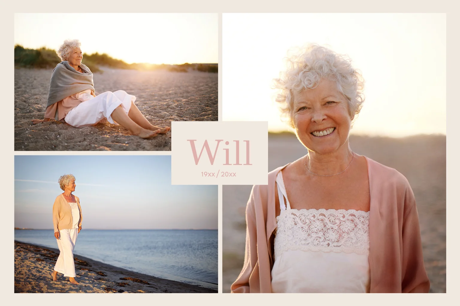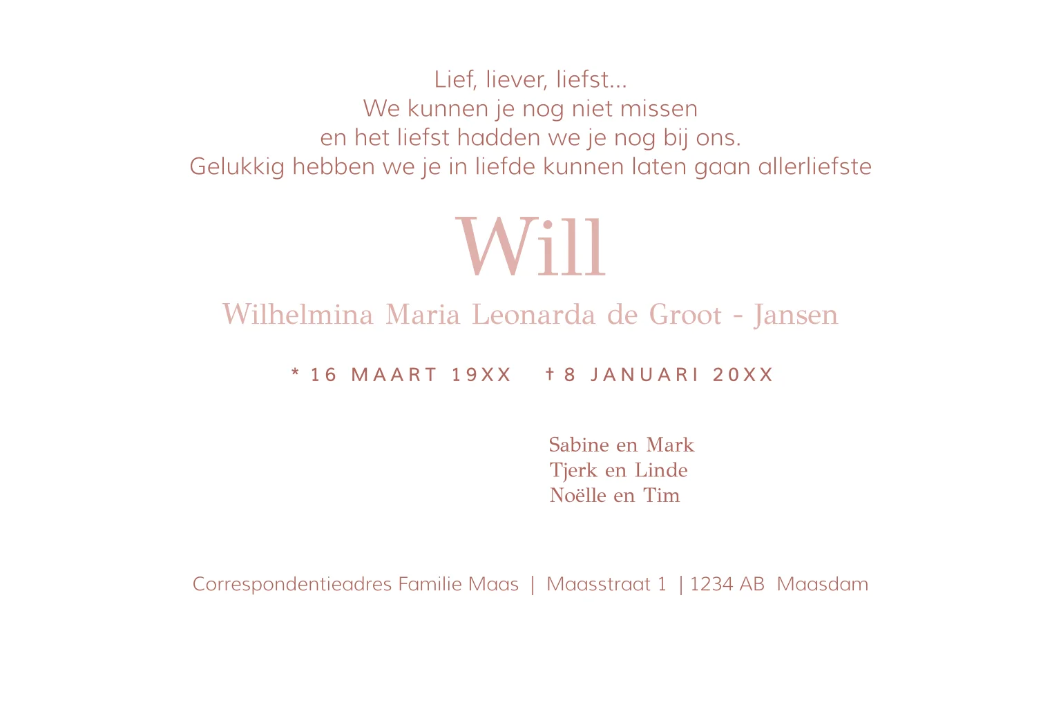 Maak eenvoudig een persoonlijke rouwkaart met foto's. Bij dit ontwerp kan je 3 mooie foto's kiezen van de overledene of van een favoriete hobby bijvoorbeeld.