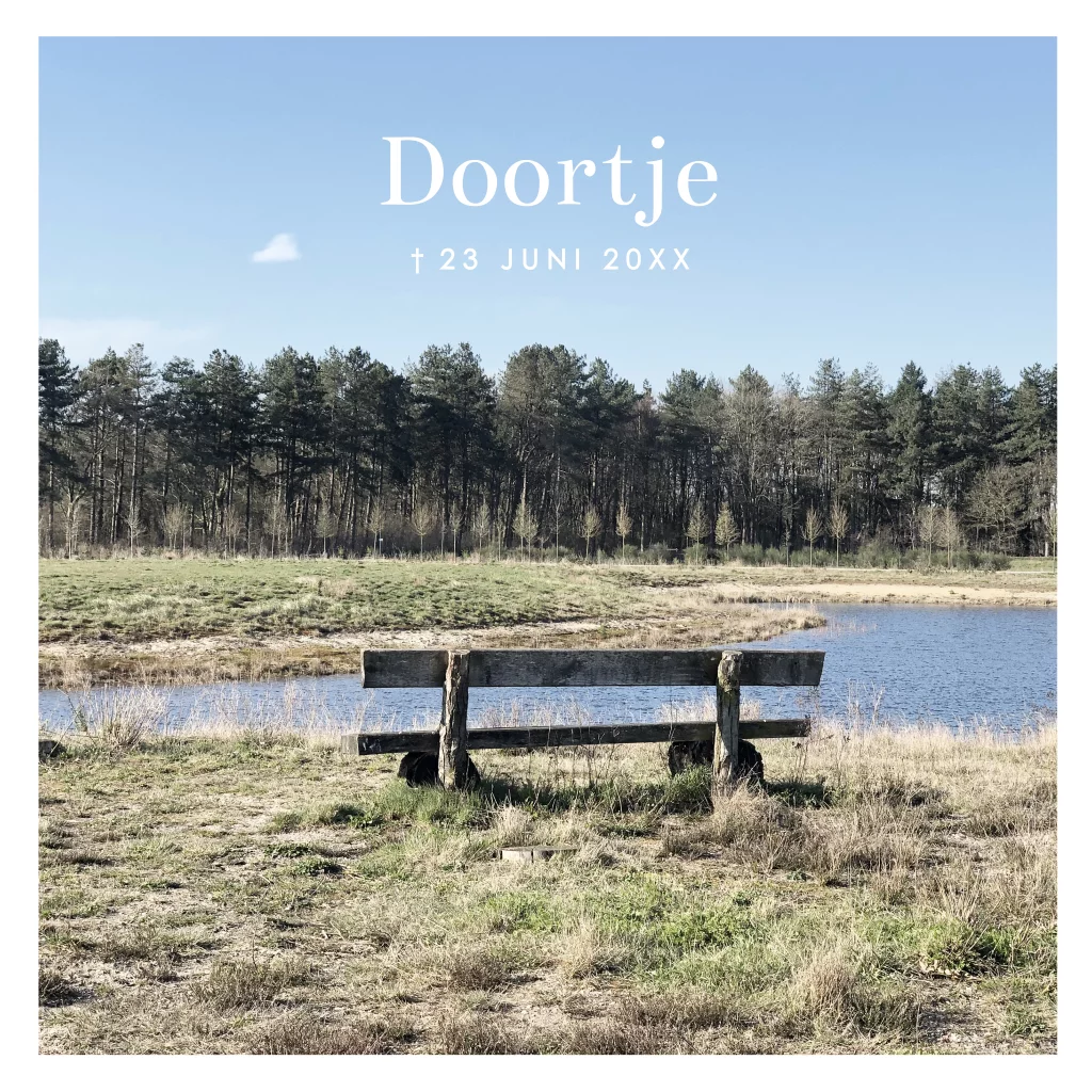 Is de laatste rustplaats van jullie dierbare op een natuurbegraafplaats? Geef de rouwkaart een mooie betekenis en kies voor een foto van deze bijzondere plek.