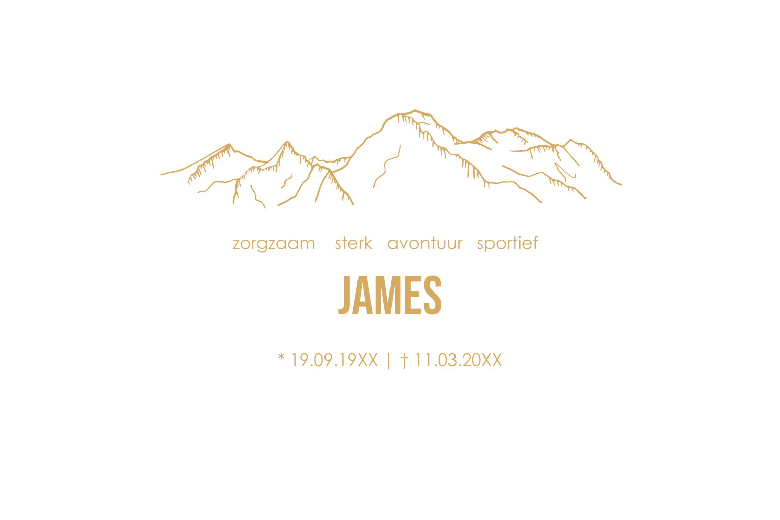 Zelf een rouwkaart maken online? Kies dit moderne ontwerp met bergen en ontwerp eenvoudig een persoonlijke kaart die past bij het leven van je dierbare.