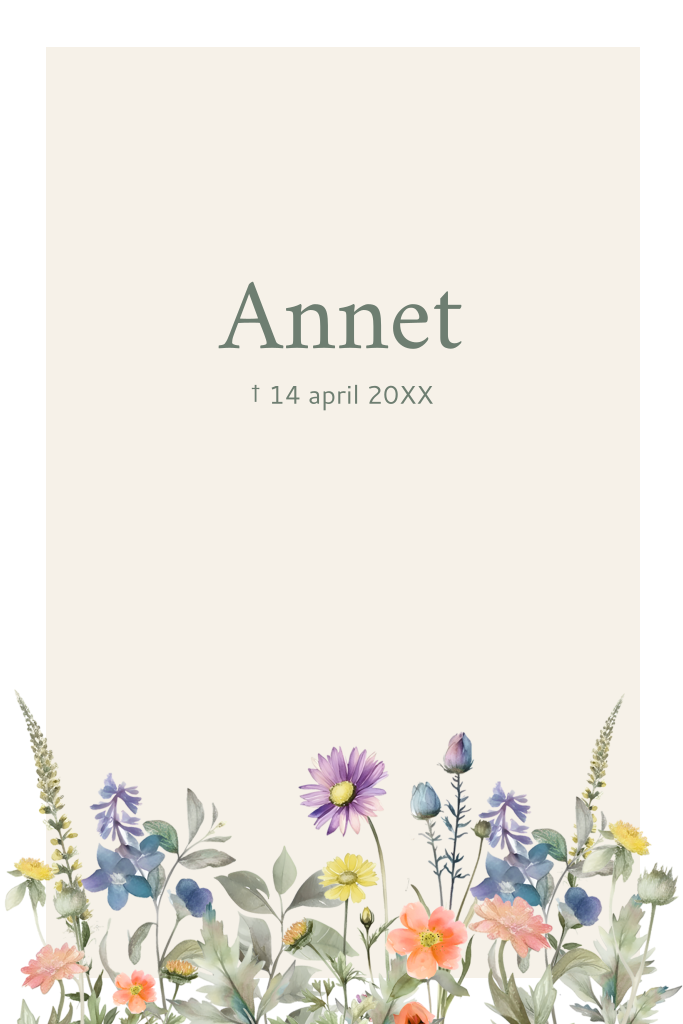 Zo mooi deze rouwkaart met veldbloemen. Kleur, vrijheid en creativiteit is te vinden in dit ontwerp.