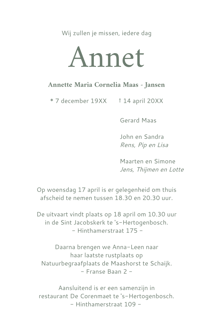 • Envelopkleur oudroze past mooi bij deze rouwkaart.