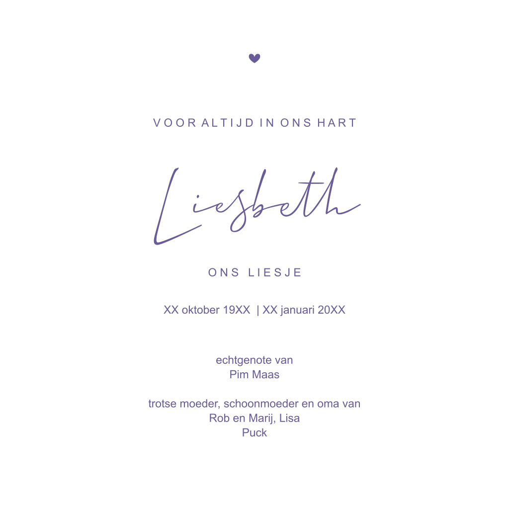 Beelden vertellen meer dan woorden... In dit design hebben we gekozen voor een voorzijde met alleen foto's. Mooie afbeeldingen die een beeld geven van het leven van je dierbare.