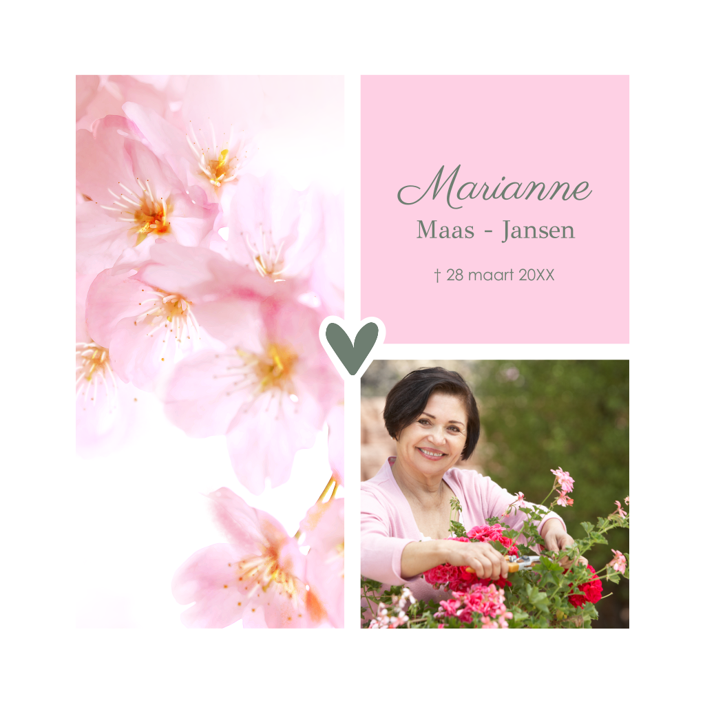 Een rouwkaart met foto maakt het extra persoonlijk. Een rouwkaart krijgt daardoor ook meer betekenis. Veel nabestaanden geven een rouwkaart met foto vaak een bijzonder plekje in huis. Om zo de overledene te herdenken. Op deze kaart kun je drie persoonlijke foto's plaatsen.