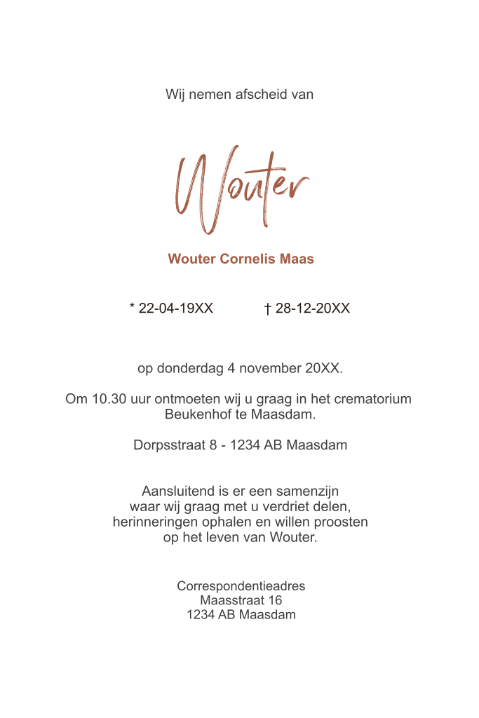 • Envelopkleur donkergroen past mooi bij deze rouwkaart.